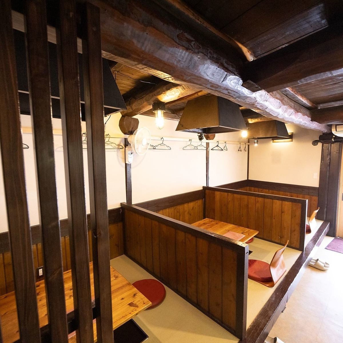 【掘りごたつ席】店は靴を脱いでご利用いただける掘りごたつをご用意。1席1席が広く、大勢でお越しいただいた際でも皆様でゆったりご利用いただけるお席となっております!お子様連れも安心なのでご家族でのお食事にも是非!